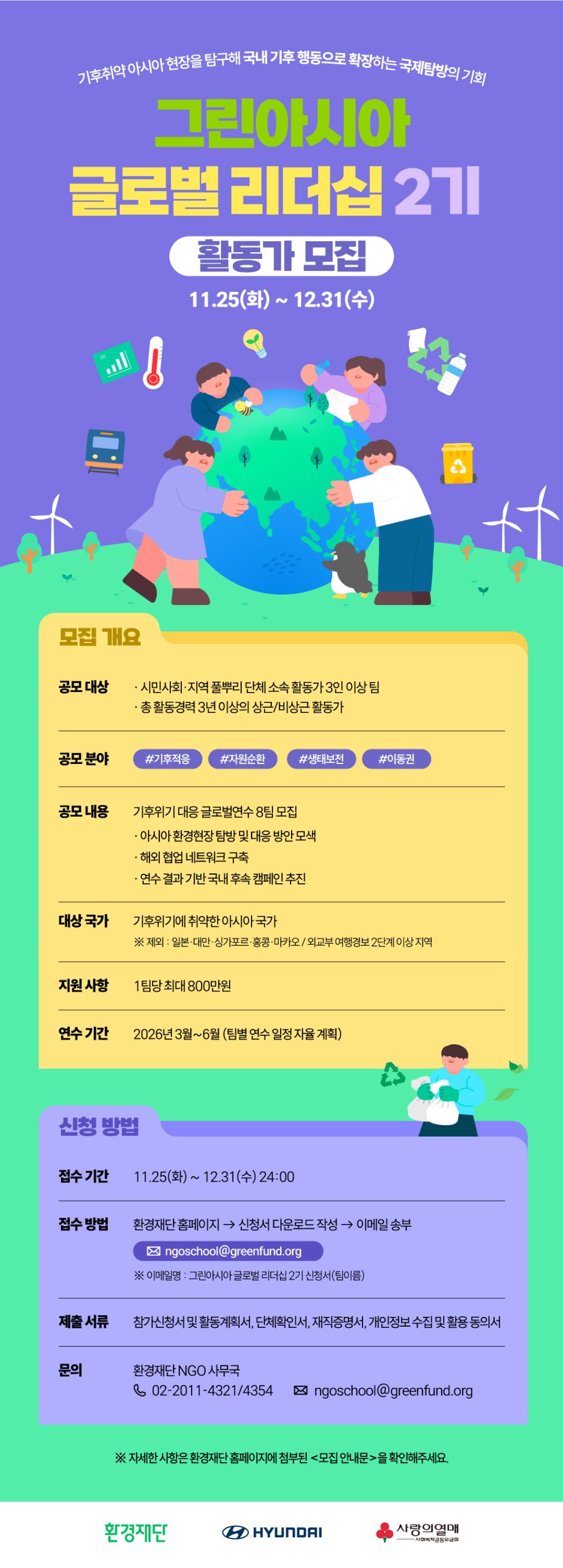 <그린아시아 글로벌 리더십 지원사업 2기> 1. 공모 기간 - 11.25(화) ~ 12.31(수) 24:00